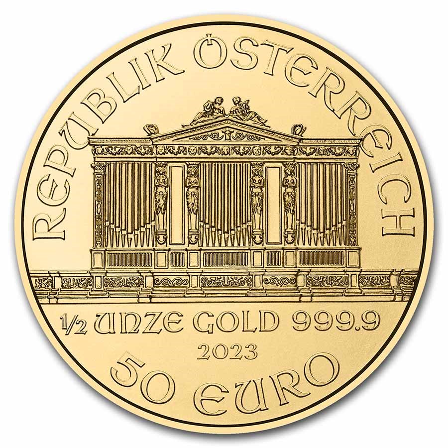 Vienna Philarmonic i ½ ounce gull: Denne ettertraktede mynten inneholder 15,55 gram rent gull. Den har vært på markedet siden 1994 og er anerkjent som gyldig betalingsmiddel med en pålydende verdi på 50 Euro.
