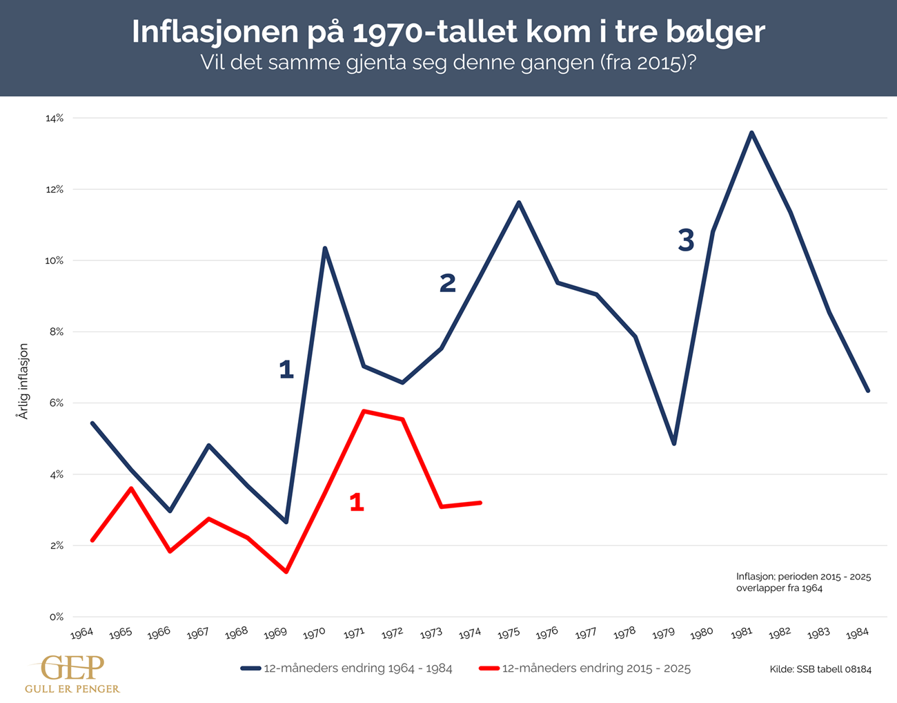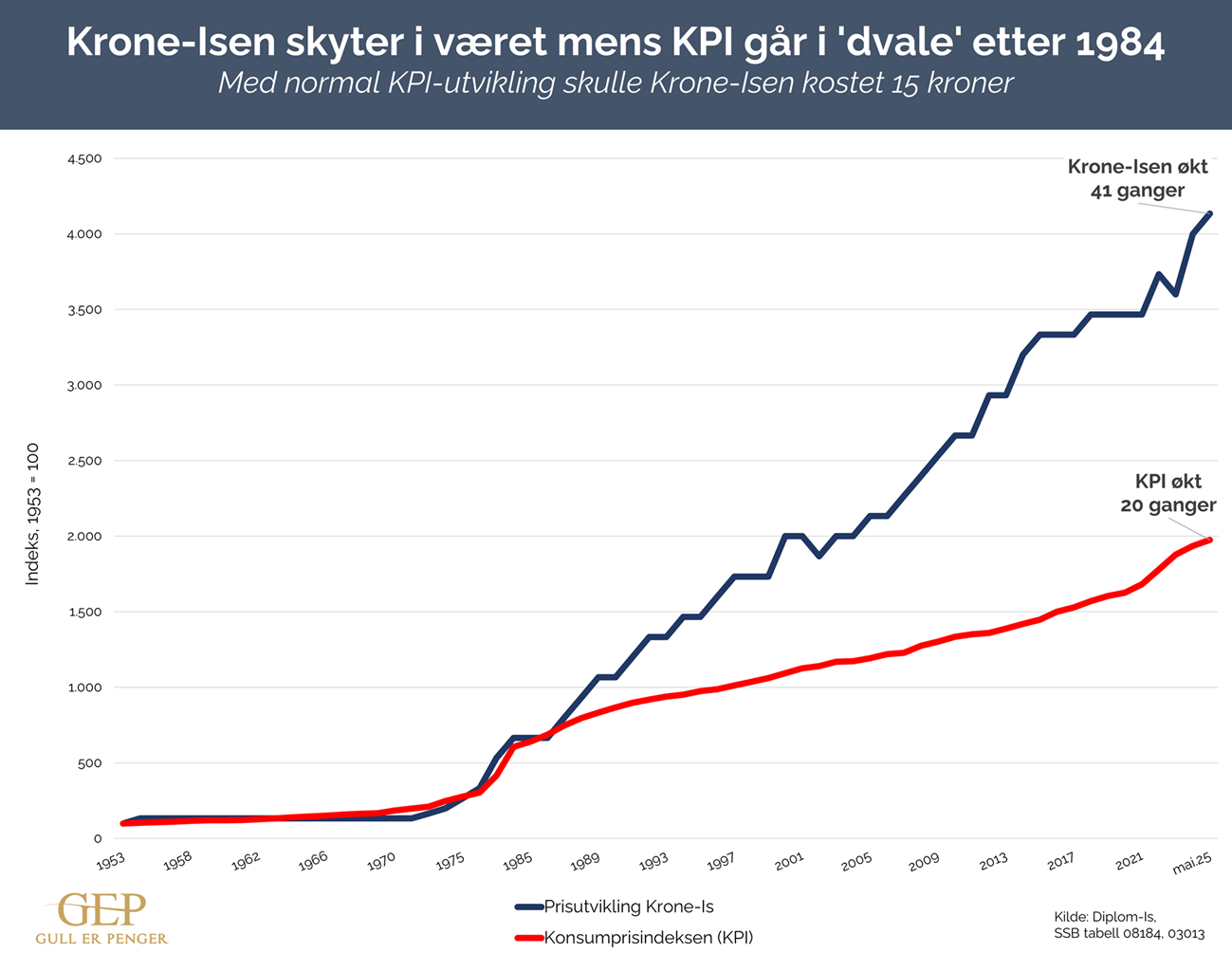 I 1984 ser vi derimot en endring i at prisstigningen, eksempelvis til krone-isen, stiger betydelig mer enn målet på KPI.