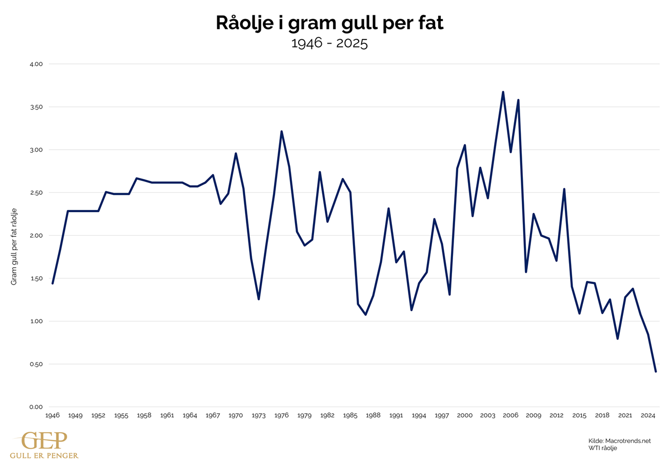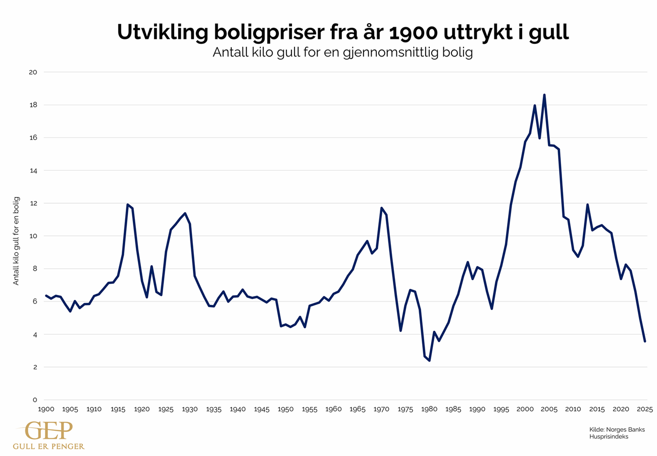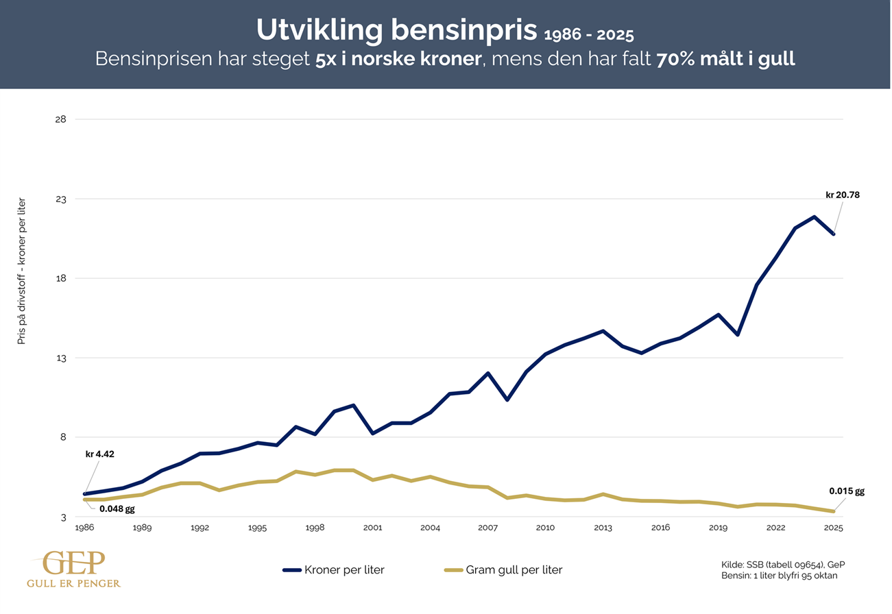 På denne siden finner du grafer som viser prisutviklingen til varer, målt både i norske kroner og gull.