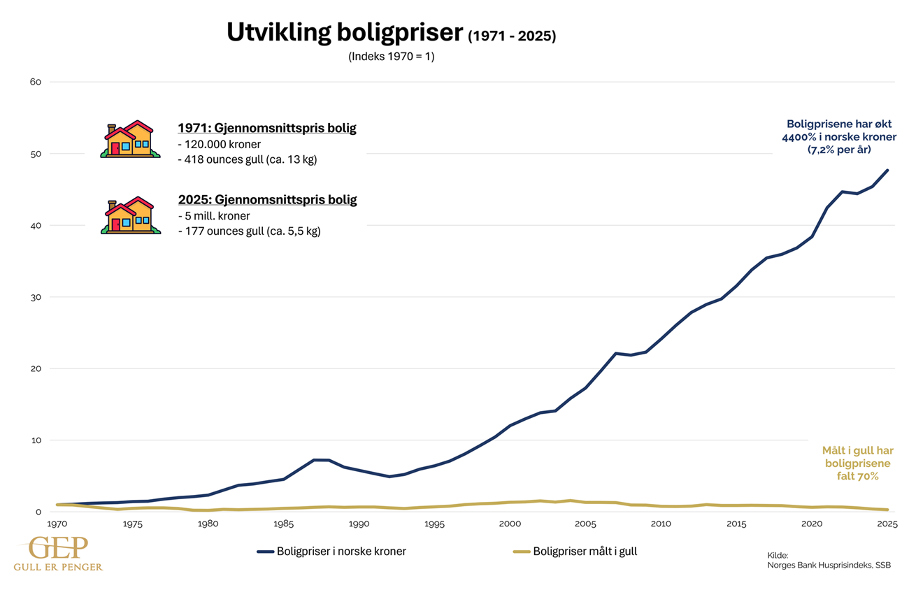 Målet med denne siden er, ved å måle priser opp mot gull sin stabile verdi, å finne ut av om det er varene eller den norske kronen som gjør at prisene tilsynelatende stiger så mye.