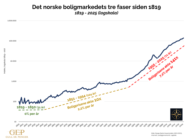 For å forstå nåtiden må vi kjenne til vår historie. La oss studere det norske boligmarkedet nesten helt tilbake til vi ble et fritt land i 1814.